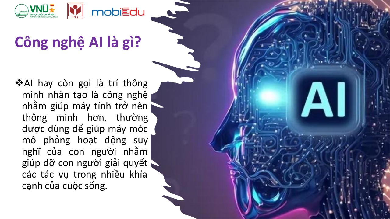 AI hay còn gọi là trí thông minh nhân tạo là công nghệ nhằm giúp máy tính trở nên thông minh hơn, thường được dùng để giúp máy móc mô phỏng hoạt động suy nghĩ của con người nhằm giúp đỡ con người giải quyết các tác vụ trong nhiều khía cạnh của cuộc sống.